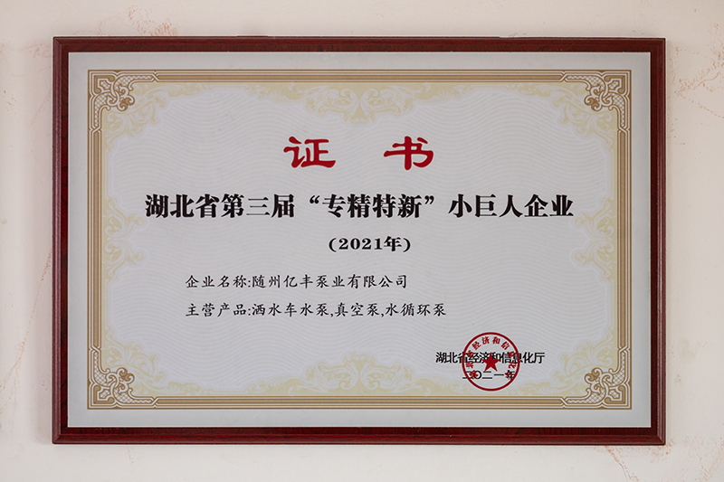 隨州億豐泵業(yè)有限公司位于隨州市曾都經(jīng)濟(jì)開發(fā)區(qū),建筑面積15000平方米,公司現(xiàn)有大學(xué)文憑以上的35人、技術(shù)人員25人(高級職稱5人、中級職稱以上27人)。公司自成立以來先后獲得高新技術(shù)企業(yè)、“專精特新”小巨人企業(yè)、隱形冠軍、著名商標(biāo)等一系列榮譽(yù)。